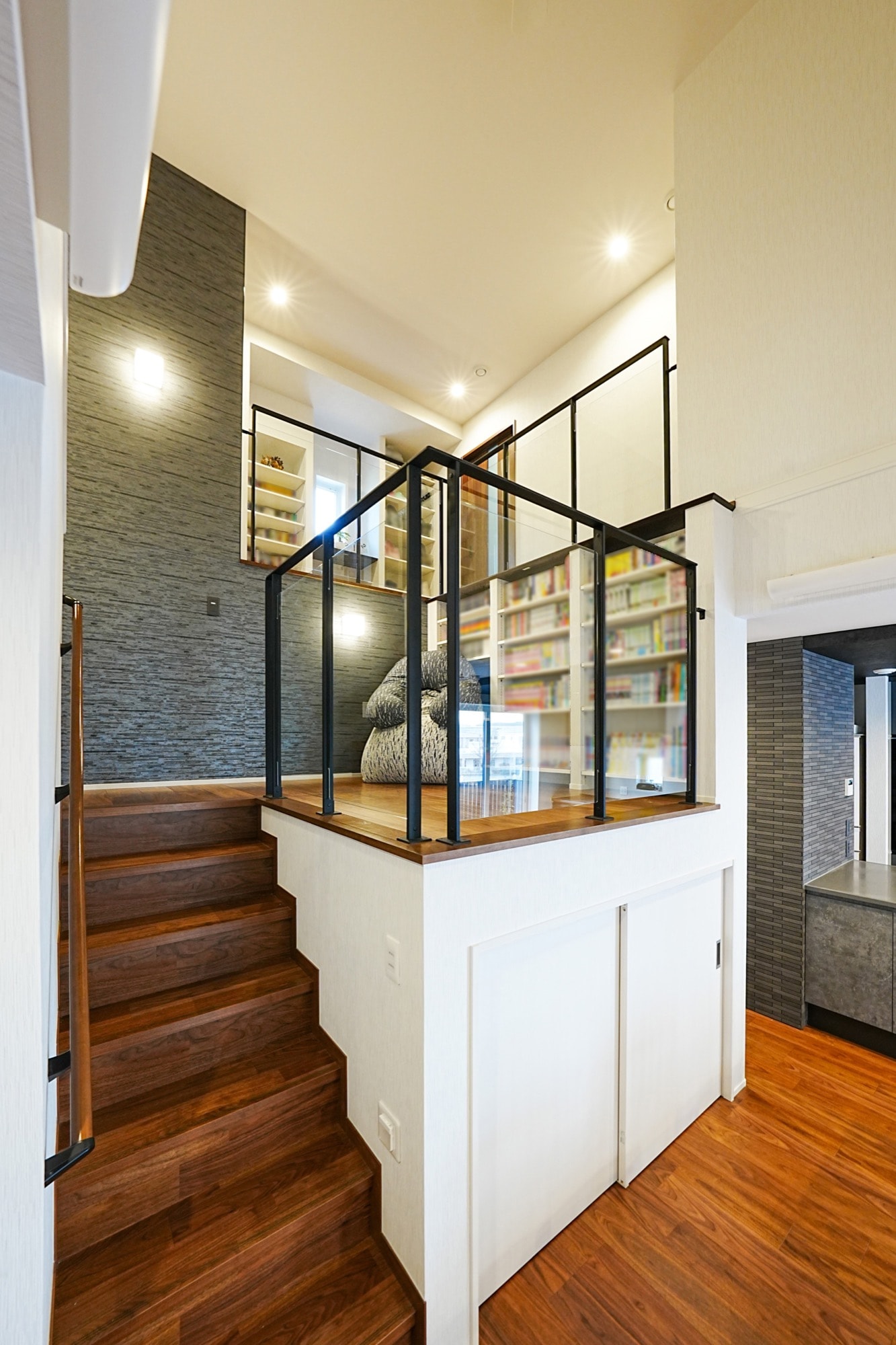 リビングにいる家族の気配を感じながら、読書を楽しめる空間です。
