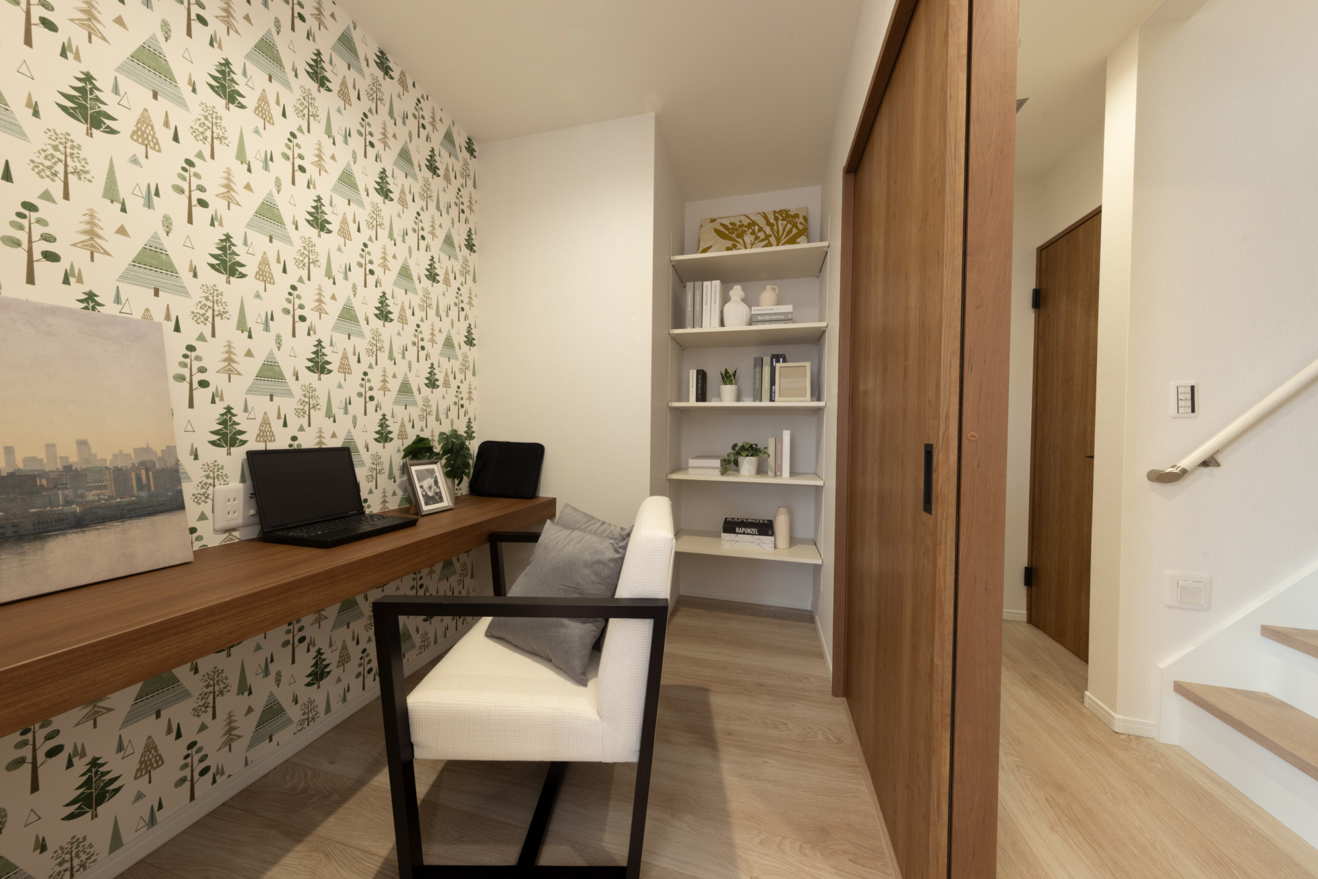 リビングに隣接したココチスペースは在宅ワークや読書、趣味の場として活用可能。適度な独立性を持たせつつ家族の気配を感じられる位置に配置し、集中とリラックスを両立する設計です。収納も近く利便性があります。